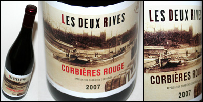 The name on this wine, Les Deux Rives, refers to the twin banks of the Canal du Midi built in this region in 1600 by Louis XIV. The wine is a blend of Grenache 40%, Syrah 30%, Mourvedre 20% and Carignan 10%.
