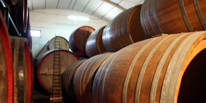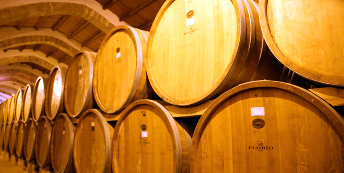 - Casks full of aging Marsala at Florio