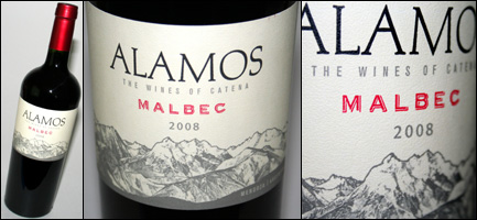 The 2008 Alamos Malbec isn’t 100% Malbec. There is a little Cabernet Sauvignon and a little Bonarda added for complexity. Like the vast majority of Argentine Malbec, this one comes from the Mendoza region. The grapes came from vineyards in the Uco Valley and in the Luján de Cuyo area south of the city of Mendoza. Part of the wine spent time in French oak and part in American oak before blending and bottling.